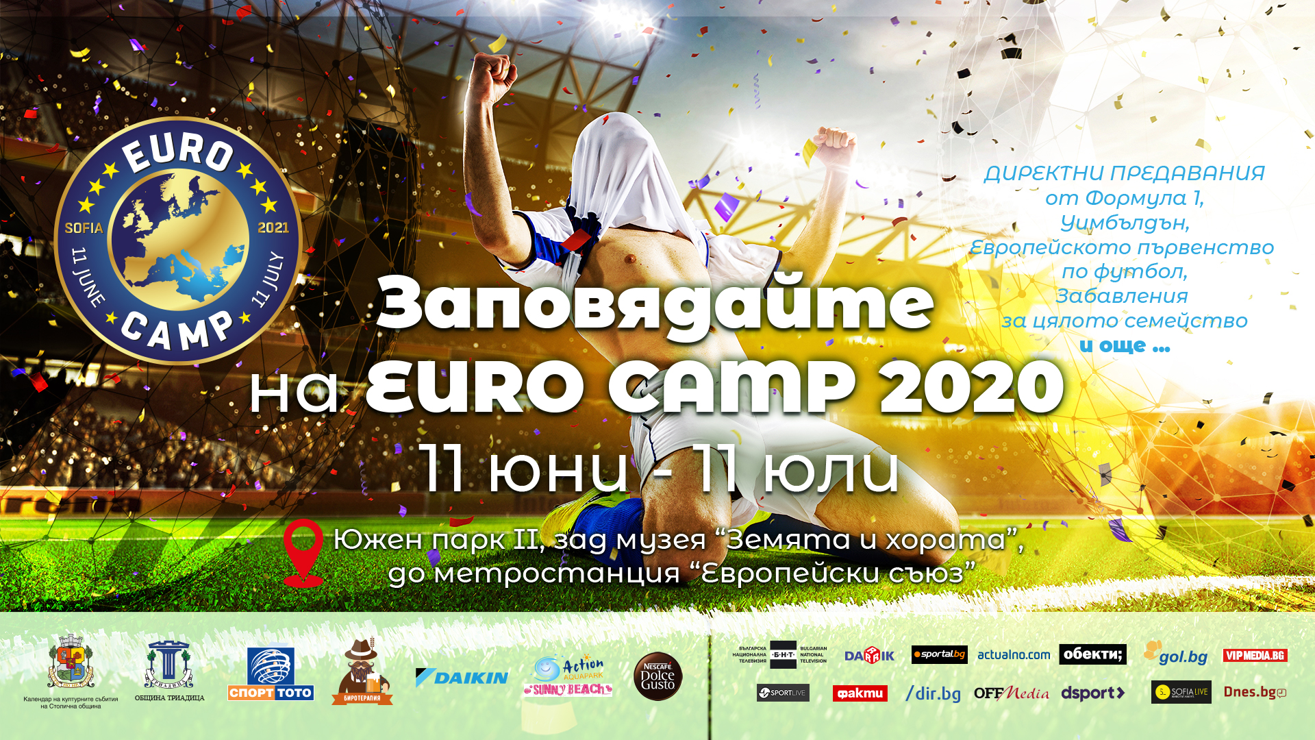 От 11 юни до 11 юли EURO CAMP ще е Спортното сърце на София, разположено зад музея „Земята и хората“. На голям екран пряко ще се излъчват мачовете от Европейското първенство по футбол, Формула 1 и Уимбълдън. Спортният кампус предлага ежедневни забавления за цялото семейство, най-добрата световна бира и разнообразна street food храна.